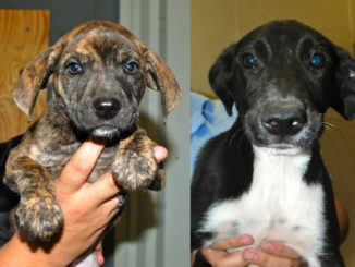 (Left)Almond is a female retriever mix puppy.