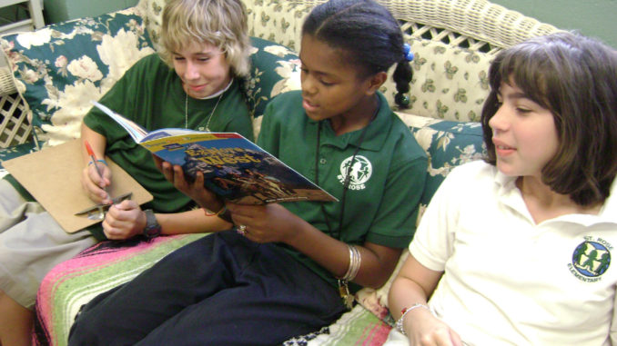 Jordan Cooke, Brienan Crouch and Christina Banegas, 4th grade students, work together to locate information in a nonfiction text. […]