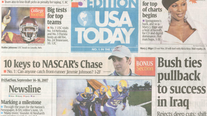 On Sept. 15, 1982 the nation’s first national newspaper, USA Today, emerged from an incubated idea found mainly in reader surveys and prototype think tanks into a coast-to-coast publication and this week marks the 25th anniversary of the biggest-selling newspaper in the United States. My love affair with the newspaper became apparent in college when I’d rush out to buy the weekend edition of USA Today faithfully on Friday and sit beneath the oak trees in the student union filling my mind with the most up-to-date news items of the week.