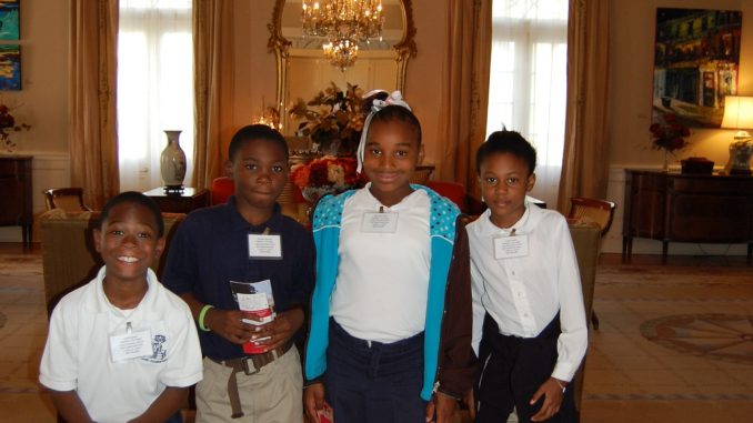 Third grade students in Mrs. Stephens’ and Mrs. Matherne’s classes pose in the governor’s mansion in Baton Rouge. From left to right, Jerry Spencer, Zebediah Goodman, Mercedes Smith and Jordan Baptiste pose in from of the governor’s living room.