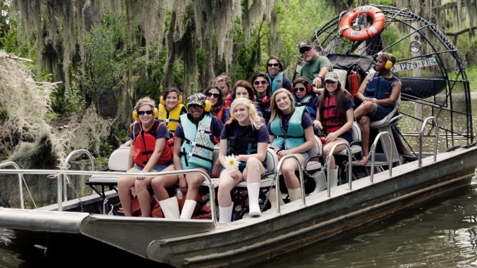 “We are so appreciative of the community support for this project,” said Brett Cazenave, 2011-2012 Parent Club President. “Mr. Arthur Matherne provided airboats for the girls for several pictures and they were able to experience a tour of Bayou Des Allemands. Tony and Ann Taylor provided Louisiana Sportsmen t-shirts for the girls to use in several pictures. Bruce McDonald allowed us to end the day at his camp where we took the final pictures for the book. And Percle’s Jump-n-Fun provided a water slide for the girls to enjoy at the end of a hot day. We sincerely appreciate everyone’s support.”
