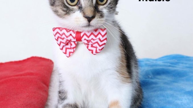 “Maisie is a 2-1/2 month-old female bundle of sweetness. She loves to play and will cuddle with you in a heartbeat. Maisie, her siblings and their Mom were rescued from harms way and await adoption. Maisie adores attention and promises to love you furr-ever if you give her a place in your heart through adoption. All cat and kitten adoptions are $30 which include a great package of services for each pet,” said Jackie Boudreaux, president of the Humane Society.