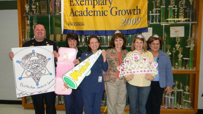 Pictured are Brook Lawrence (Resource officer), Roberta Growl (School Nurse), Dellery Mitchell (School Counselor), Cecilia Lucas, Kiersten Granier and Margaret Granier (Office Specialist).