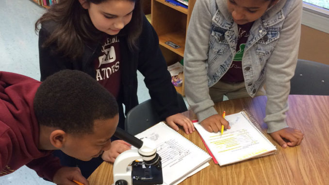 Hebert wrote a grant for the microscopes, as well as a microscope camera, before Christmas break in hopes of allowing her students to identify, describe and investigate microscopic items through self discovery while promoting collaborative learning through the use of small groups and class discussions. Pictured above are students Ja’Pheth Williams, Keera Harris and Sofia Alvarenga.