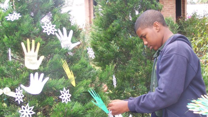 Smith students, like Avery Gauthier, also created hand ornaments for the tree displays.