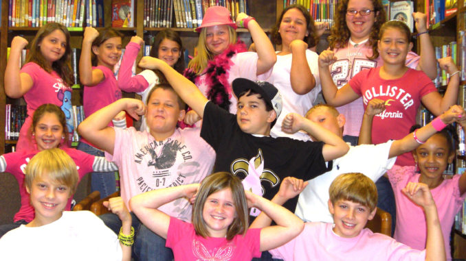 Two students, Erin Housend and Margo Matherne proposed the idea to their Principal, Jackie Sperier, and together they made it happen. Students donated $1 and in return they were allowed to dress in pink. The school raised over $230 for cancer research.