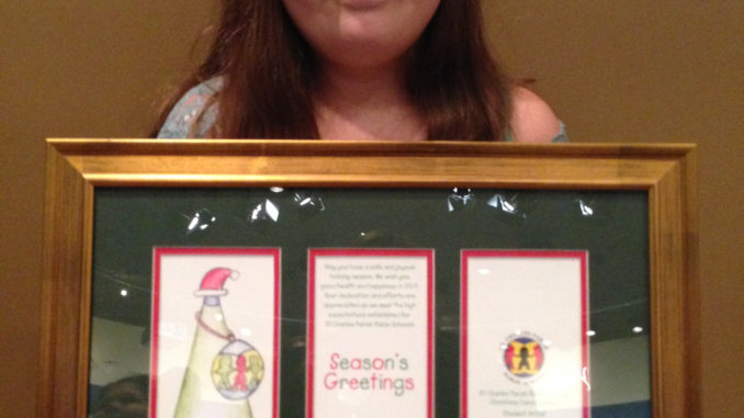 Hage’s artwork was selected to be on the district’s annual Christmas card and her principal, Jackie Sperier, and her Talented Art teacher, Jasper Fahrig, were with Hage and her family when she was presented with her award.