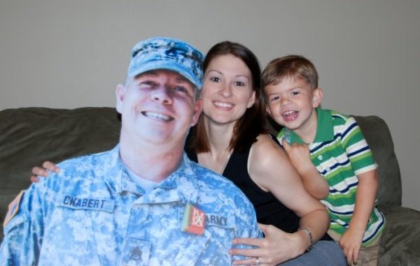 “Every day we look at pictures and talk about dad…we even have a ‘Flat Daddy,’ which is a 3-foot cardboard cutout of my husband that Hunter plays with,” she said. “Skype has allowed us to communicate with video calls, so that has made it a little easier.”