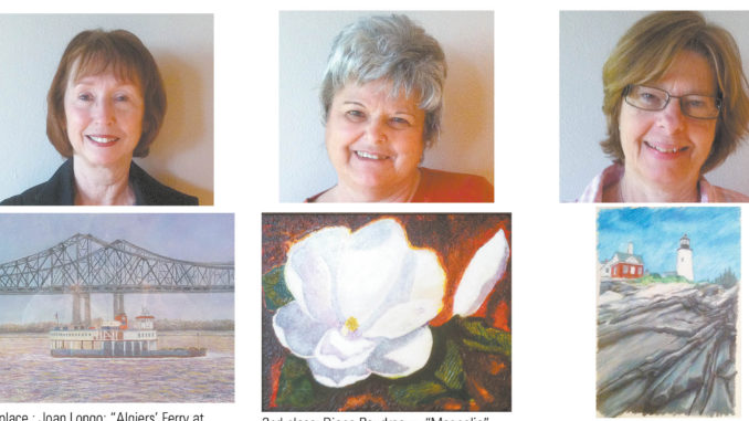 1st place : Joan Longo: “Algiers’ Ferry at Canal St. in New Orleans, La.” 2nd place: Diane Boudreaux: “Magnolia”. 3rd place: Nancy Keisman: “Pemaquid”.