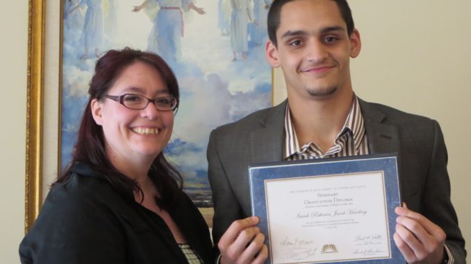 Destrehan High School graduate Isaiah Harding accepted his graduation certificate May 25 for completing four years of early-morning scripture study classes from The Church of Jesus Christ of Latter-day Saints seminary program.