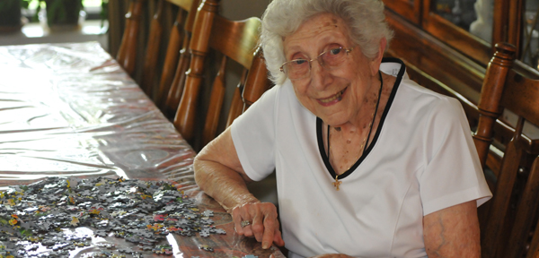 When at home, she makes puzzles with her granddaughter