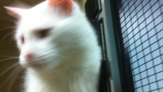 Dylan is a solid white adult male cat.