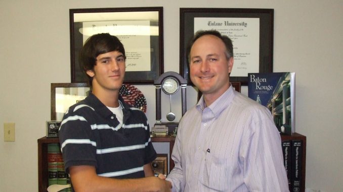 State Representative Gary Smith congratulates Austin Labry of Destrehan for receiving the 2010-2011 Tulane Legislative Scholarship.