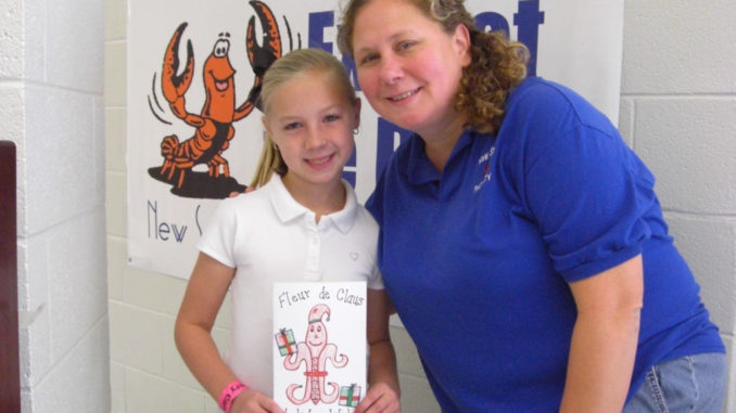 Addison Raiford was the winner for the 2009 New Sarpy Elementary Christmas Card contest. Her drawing of “Fleur de Claus” was selected for the cover design for school holiday card.  Addison is a third grader in Mrs. Dunia Kennedy’s homeroom. She is pictured here with art teacher, Nicole Royer.