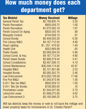 St. Charles Parish tax districts, are deciding whether or not to lower millages at meetings scheduled throughout the summer.