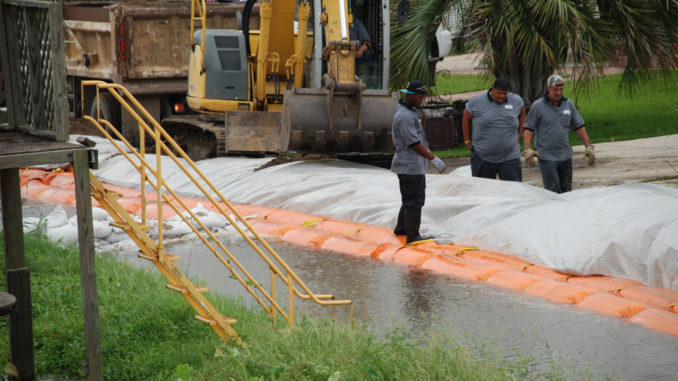At Magnolia Ridge, water was three feet deep in places at the southern end of the road. The small spoil levee behind Hahnville High School also experienced some overtopping on both Sept. 15 and Sept. 16, but Public Works crews corrected the problem with sandbags and clay.