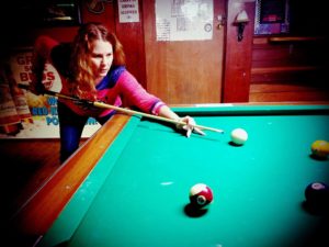 With the APA league, a player is initially assigned a skill level (1 to 7) and Natalie got a 2. She gradually rose to a 3 and was most recently named MVP – that would be “most valuable player” – by the River Parish League. Now, she’s a 4 and won all but one of her matches last season.