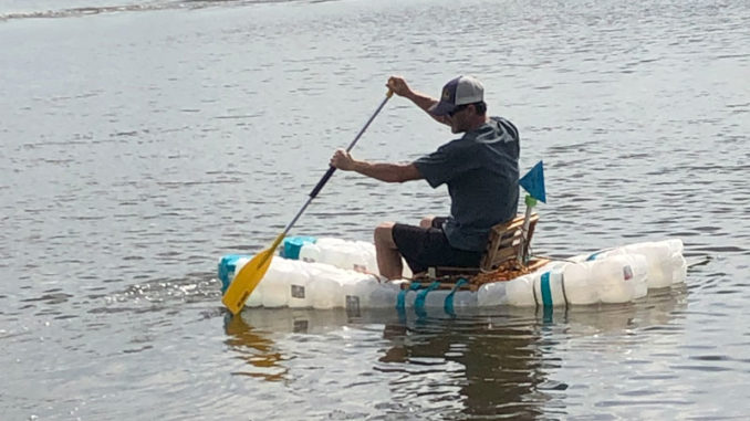 But Schneider opted for materials more easily available and cheap – milk jugs – and that idea gave rise to the jug boat. It was an appealing summer project, as well as fit with the area’s plentiful water. She has a kayak, which provided the seat for their new low-tech boat, and with some adjustments she more evenly distributed the weight so adults could ride it, too.