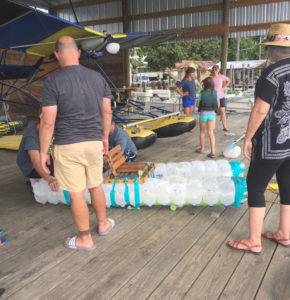 Soon into construction, Schneider was told assembling the jugs cap down, rather than up, would be wiser in case a cap came off. This way, the jug boat would still float.