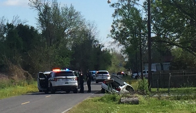 St. Charles Parish sheriff’s deputies are searching for a man who kidnapped his ex-girlfriend at gunpoint this morning before the car they were traveling in crashed near the Paradis Library on Old Spanish Trail.