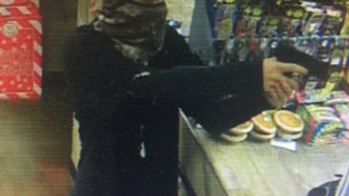 The subject is described as a white male approximately between the ages of 18 and 21, 5’9” to 5’10 in height and with a thin build. The subject was clad in a camouflage face mask, a navy colored t-shirt over a fitted black long sleeve shirt and dark gray or black jeans.