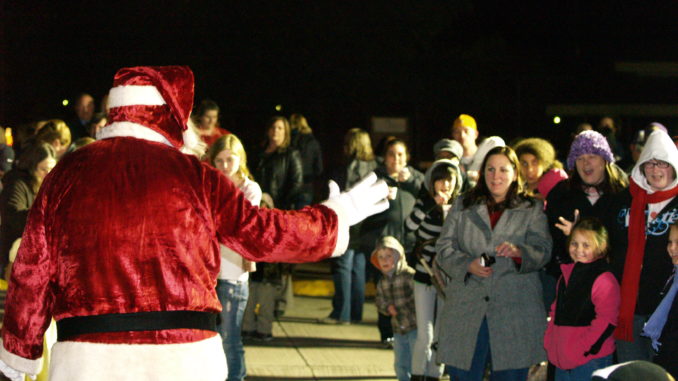 After the annual tree lighting at the West Bank Bridge Park, which was sponsored by the Rotary Club of St. Charles, Santa Claus rode in on a fire truck to hear what parish children wanted for Christmas.