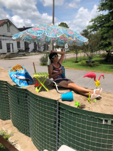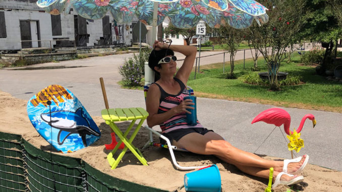 [pullquote]“I thought it would lift the spirits of my friends and neighbors and those of us who live along the water that will deal with the sand baskets on a daily basis in front of our homes.” — Claire Landry[/pullquote]But it’s not just about laughing to her, it’s also about looking for the bright side and making people smile. She just doesn’t want to embarrass her three children.