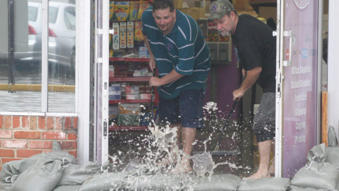 Deep water was also a problem at Boutte’s J&K Office Supply & Printing. Workers had to put sandbags in front of the door and use squeegees to push the water out of the building. Some of the water had even made its way to the back of the store.