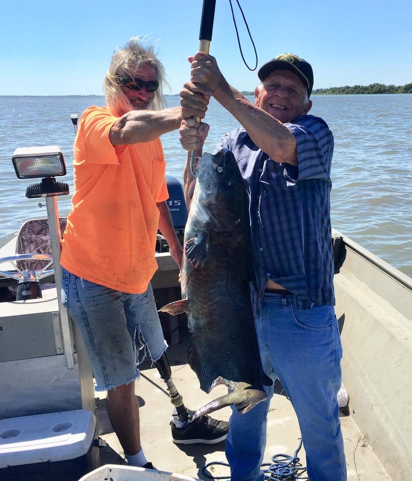 Randy “Peg” Vernor (left) with Lawrence Olinde, holding a big catfish caught in Lake Cataouatche in appreciation of Veteran’s Day.