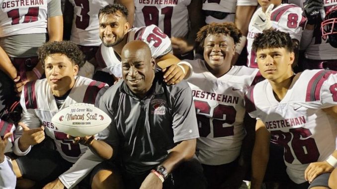 Destrehan (6-0, 3-0) earned its 20th consecutive victory, its winning streak still tops in the state as it dominated on the road to earn a 51-0 victory. In the process, the Wildcats’ Marcus Scott reached a major career milestone as his team secured the 100th victory in his prep head coaching career.