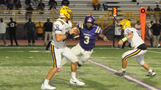 HHS expanded use of its tight, blocking heavy formation with wide receiver Titus White, running back Calvin Joseph and defensive end Cincere Simmons each operating at quarterback throughout the night – and it worked like a charm. The Tigers bested Thibodaux 49-20 to even its record at 3-3 (1-2 in District 7-5A).
