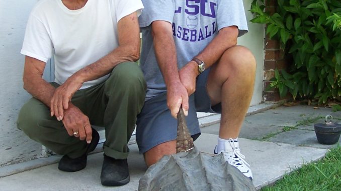 While Russell Oubre and Pete Madere were out sac-a-laiting on June 2, they ended up snagging this 60 pound alligator /loggerhead turtle in Lake Des Allemands.