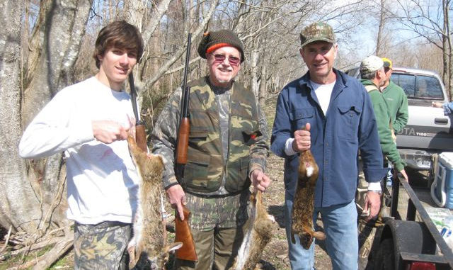 With everyone spread out, the dogs soon chased the rabbit towards John and one quick shot from his 410-pump shotgun ended the chase.