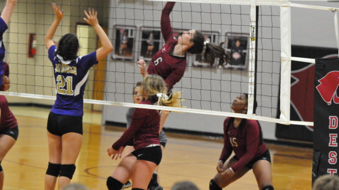Nijai Smith led Destrehan in kills with five. Allie Carmichael made 12 assists. Korinne Kimble made 18 digs while Mallory Laumann added 14.